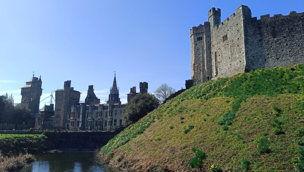 W niedzielę rano, 30 marca, na nóżkach podreptałam na dworzec autobusowy Victoria i po trzech godzinach znalazłam się w walijskim Cardiff. W którym o dziwo nie padało. Ponieważ pojechałam tam na event, a byłam za wcześnie, pochodziłam po dużym parku i tutejszym zamku, który okazał się całkiem duży (chociaż do zwiedzania jest raczej niewiele) i malowniczy.