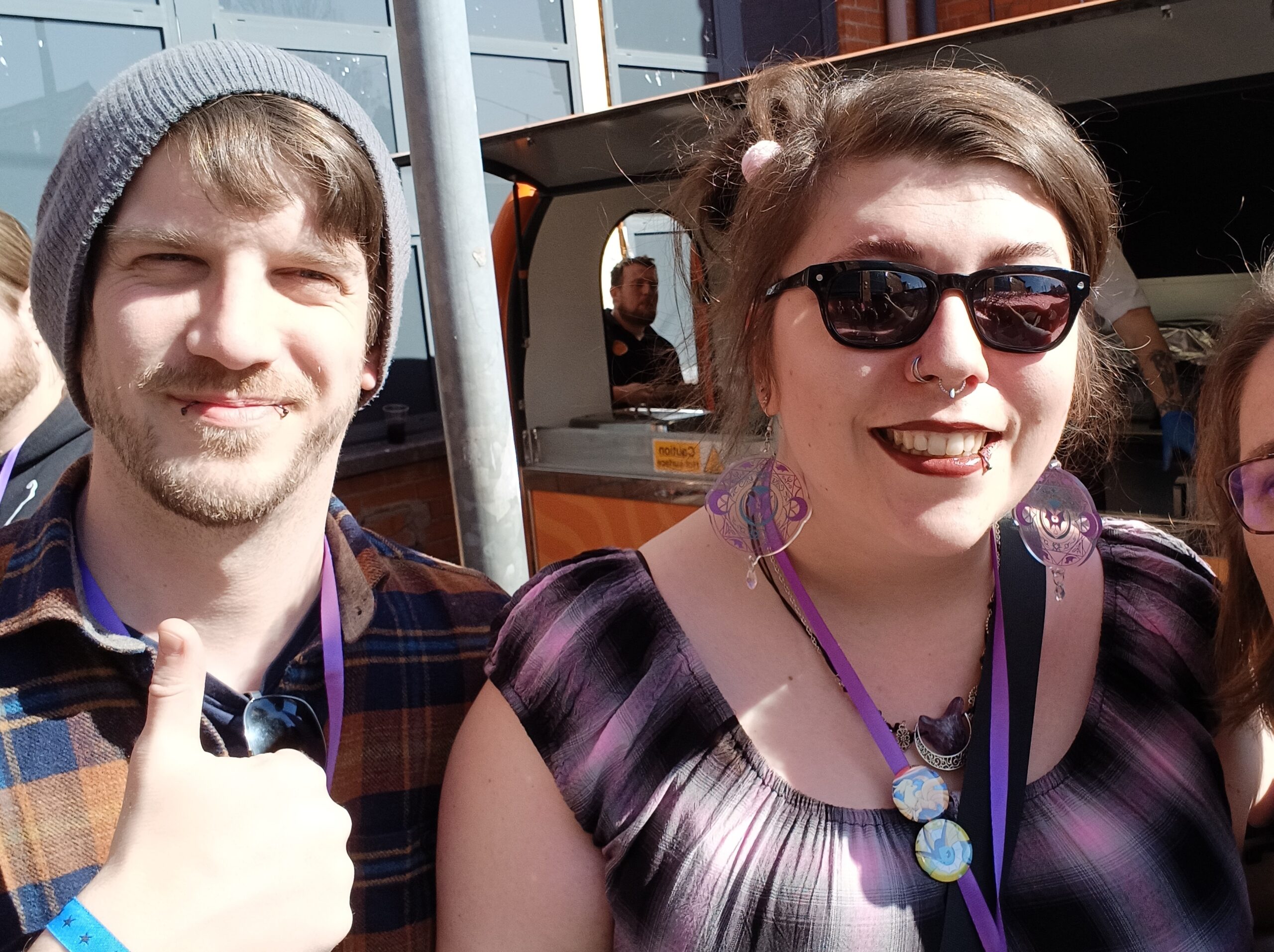 No więc stoję sobie w kolejce do wejścia do Tramshed, mam widok na punkt gastronomiczny za niskim płotkiem, a tam dwie z sześciu znanych mi już z internetów figur (podczas streamów pokazują swoje twarze, więc ich rozpoznałam). Rączki mi się zaczynają trząść jak jakiejś psychofance. Wchodzę do Tramshed. Siadam sobie przy stole w głównej sali, i znowu widzę znajome figury, tym razem cztery.